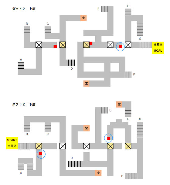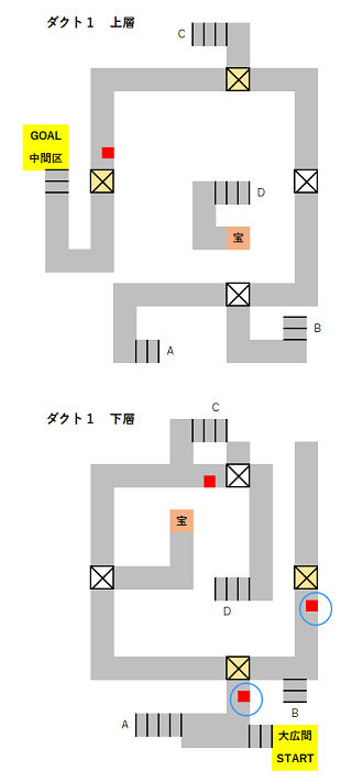 ただでさえ見づらい画面が立体構造のせいでさらに見づらくなっているため、上下のつながりが判りづらい。あまりにも見づらいので簡単にマップを描いてみたが、うーん。
