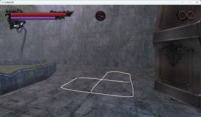 - 1階中庭から階段を使って2階へ。レバーを引いて赤い結晶がある部屋に通じる鉄格子を開く。