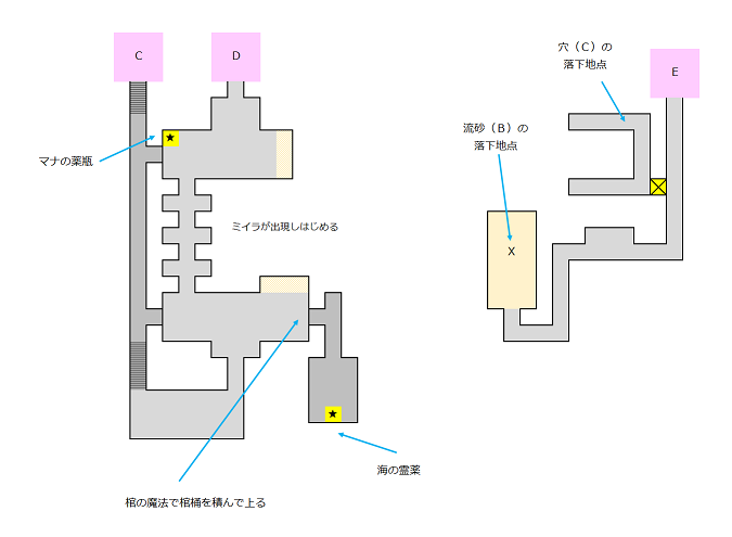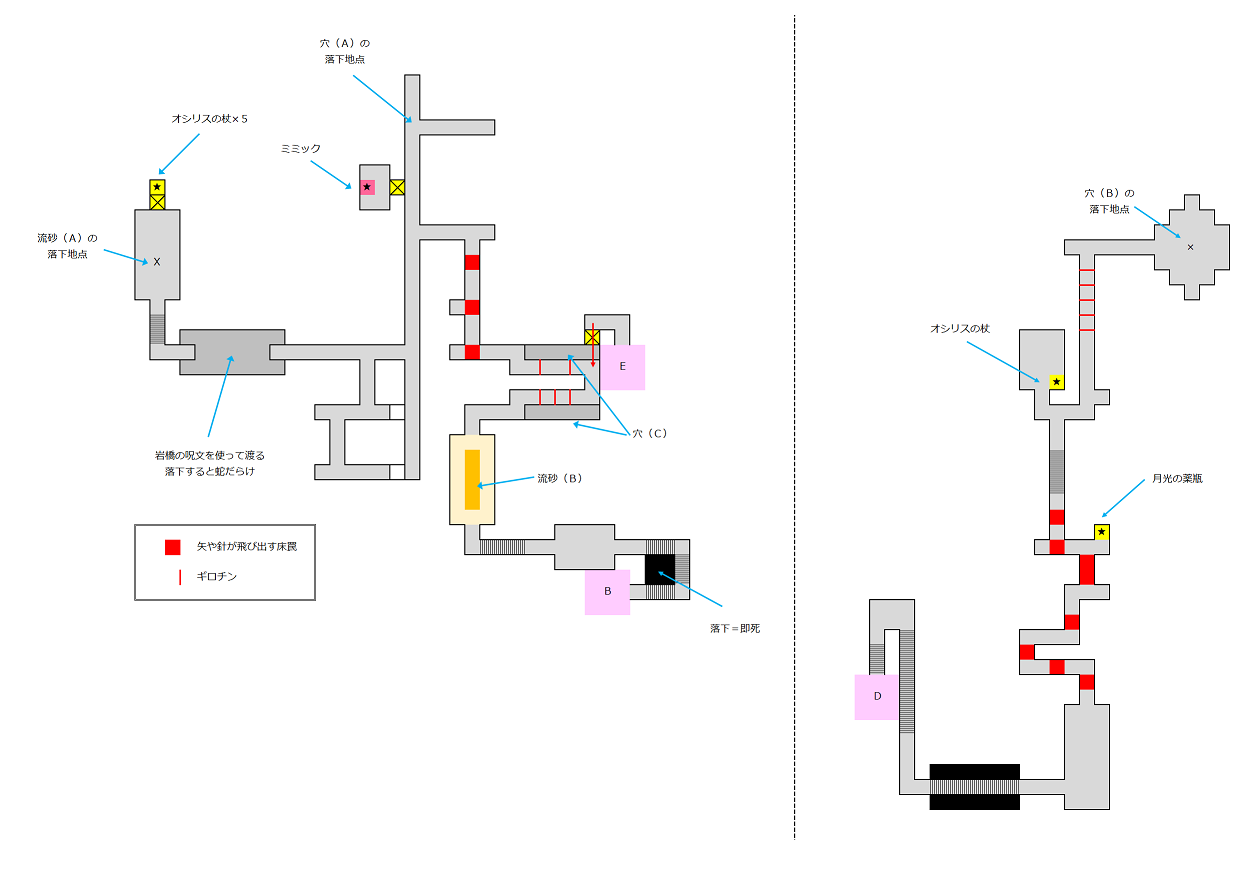 砂の神殿は、地上3階、地下2階ぐらいのマップ。