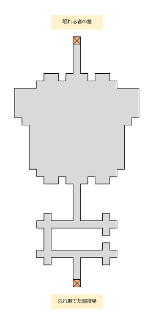 【荒れ果てた闘技場】から続くエリア。一応ラスボスってことになるのだろうか、呪縛騎士サクサリウスとの戦いが待っている。