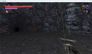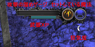赤いバーがHP、紫色のバーがマナ。その下に装備している道具が表示されます。