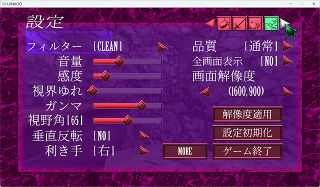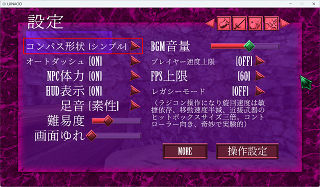 このゲーム、ガンマ補正に関して不具合があるようで、エリアを移動すると画面の明るさが初期状態に戻ります。この場合、設定画面を一度開くことでガンマ補正が再度適用されます。